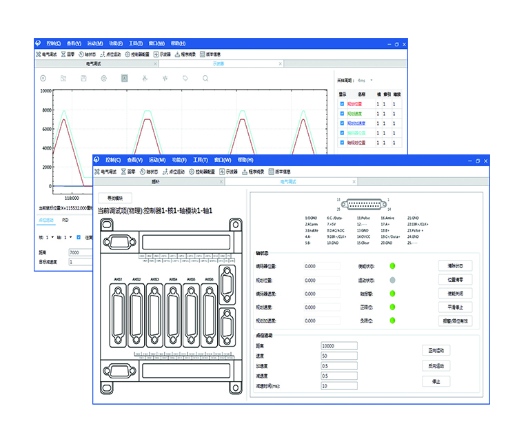 ● 控制器多軸狀態(tài)的顯示便于各個軸運動控制功能的調(diào)試
