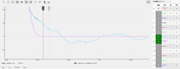 下圖是貼片龍門軸的速度與精度誤差曲線,加速度3G,速度2.5m/s,4ms內(nèi)整定到5um的誤差。龍門同步誤差全段在30um內(nèi)。
