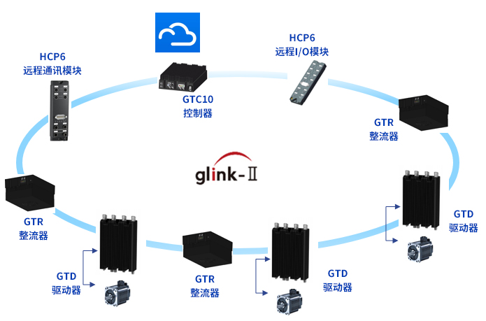 固高科技以全球首創(chuàng)的gLink-Ⅱ?qū)崟r(shí)現(xiàn)場(chǎng)工業(yè)總線將可達(dá)128軸的分布式、多主從、模塊化驅(qū)控產(chǎn)品串接起來,實(shí)現(xiàn)多機(jī)對(duì)等通信、互為主從的先進(jìn)控制架構(gòu)。