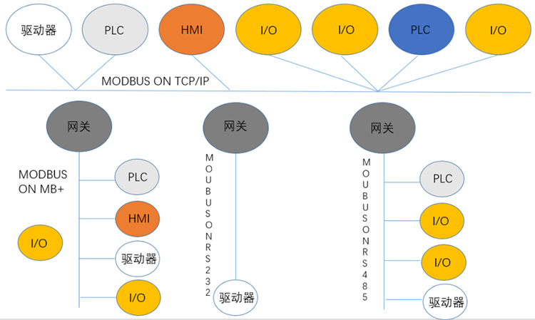 最常用Modbus協(xié)議總共有以下四種:Modbus ASCII,Modbus RTU,Modbus Plus,Modbus TCP。