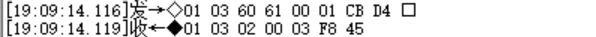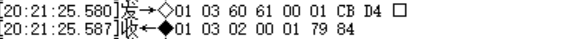 01 03 04 00 00 00 03 BA 32 //讀到數(shù)值是 0x0003